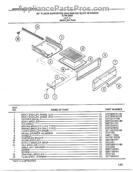 Parts for Frigidaire 2507A: 30` Floor / Broiler Pan Parts