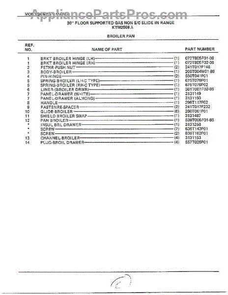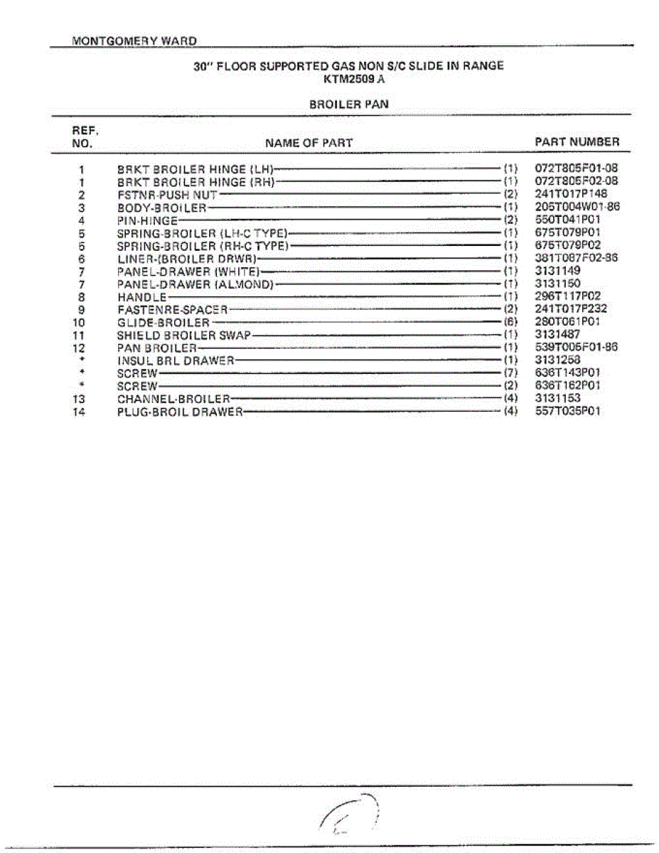 Parts for Frigidaire 2509A: 30" Floor Gas / Pan Page 2 Parts