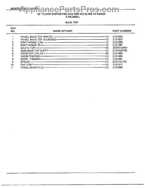Parts for Frigidaire 2409A: 30" Floor / Main Top Page 2 Parts