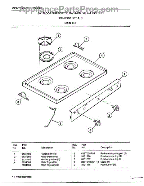 Parts for Frigidaire 2450C: 30" Floor / Main Top Parts