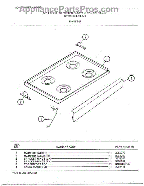 Parts for Frigidaire 4438A: 30" Floor / Main Top Parts