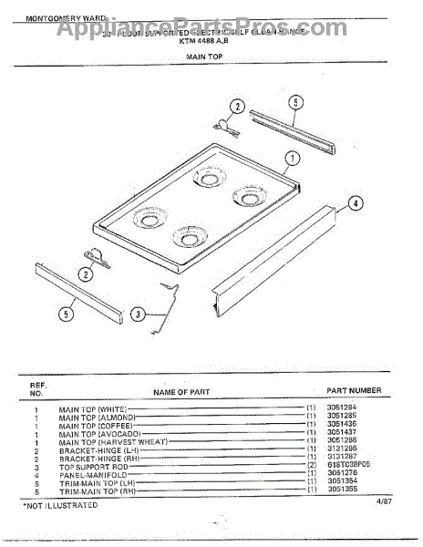 Parts for Frigidaire 4488B: 30" Floor / Main Top Parts