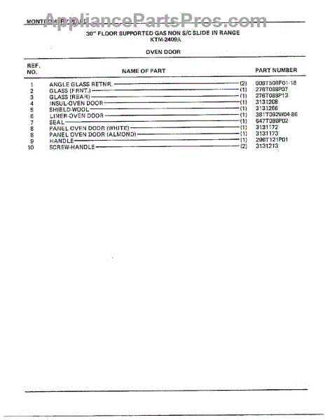 Parts for Frigidaire 2409A: 30" Floor / Oven Door Page 2 Parts