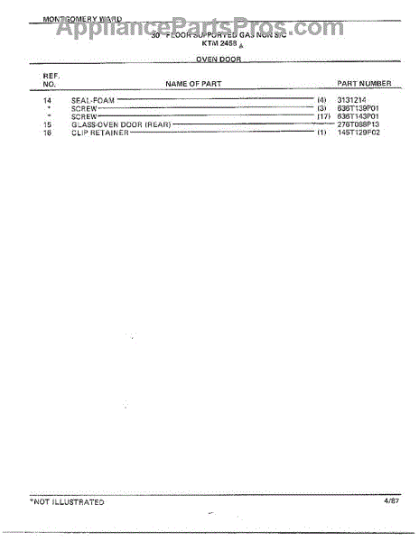 Replacement oven door seal that creates a heat-tight barrier around the oven door to help maintain oven temperature and reduce heat loss. Restores proper door sealing for more even cooking and safer operation. What it does: