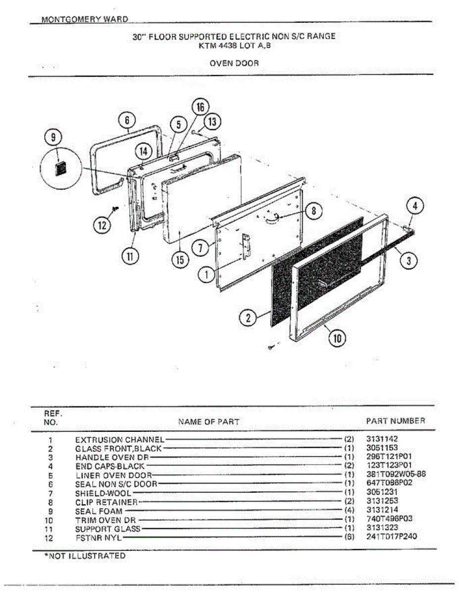 Parts for Frigidaire 4438A: 30" Floor / Oven Door Parts