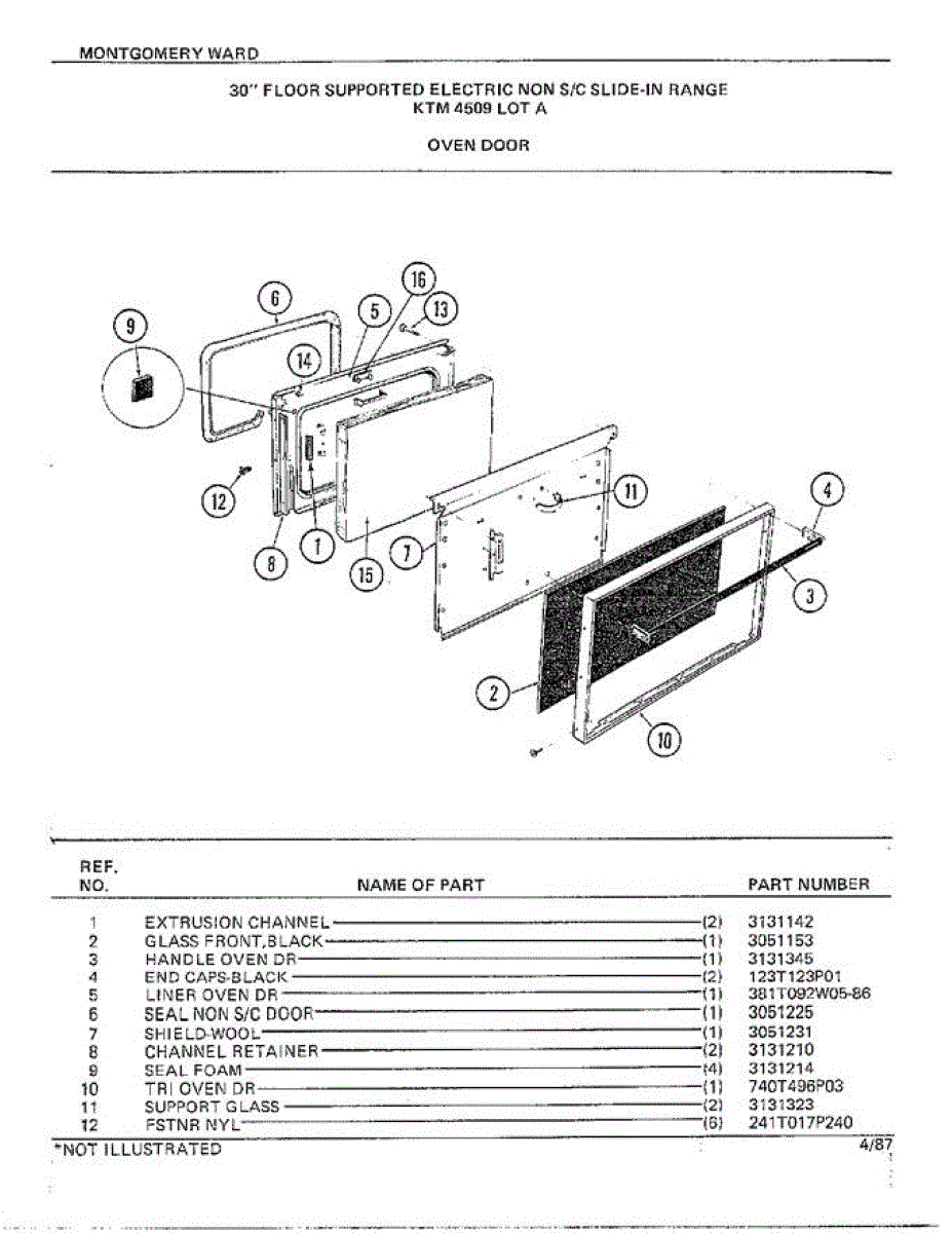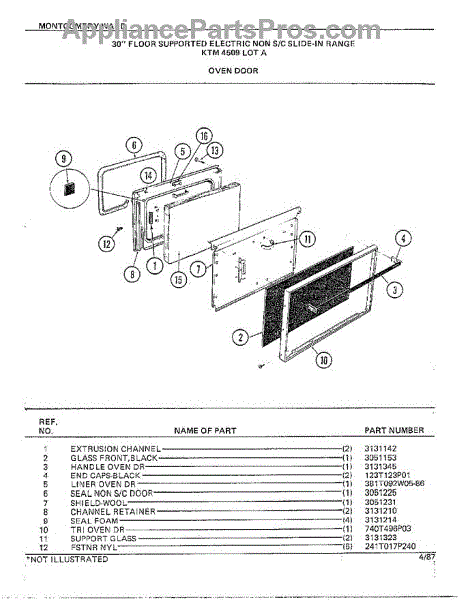 Parts for Frigidaire 4509A: 30" Floor / Oven Door Parts