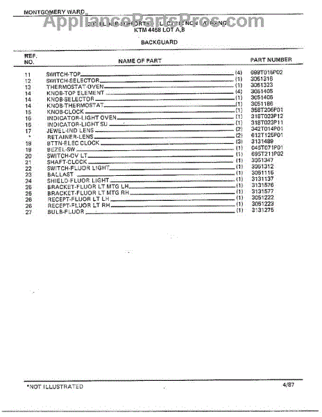 Parts for Frigidaire 4458B: 30" Floor Supported Elec Backguard Page 2 Parts