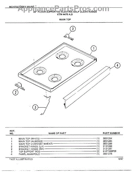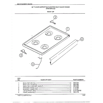 Parts for Frigidaire 4478B: 30" Floor Supported Elec Main Top Parts
