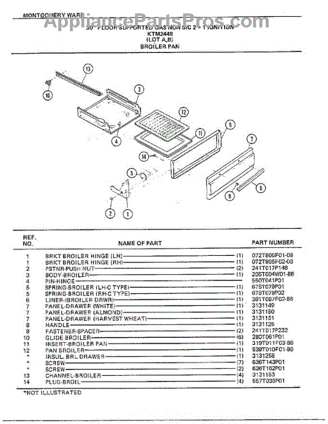 Parts for Frigidaire 2448B: 30" Floor Supported Broiler Pan Parts