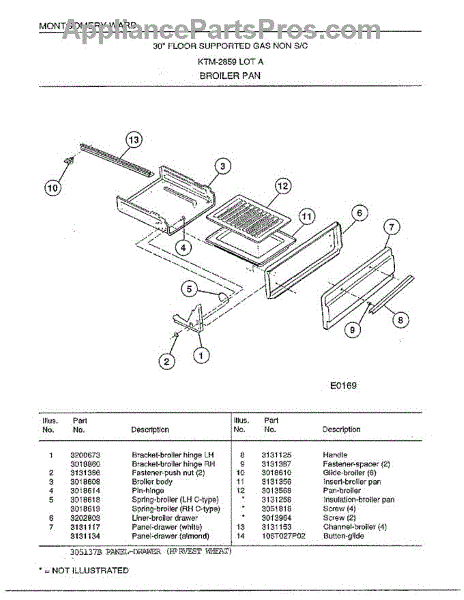 Parts for Frigidaire 2859A: 30"Floor Supported Gas / Broiler Pan Parts