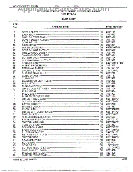 Parts for Frigidaire 4478B: 30" Floor Supported Elec Basic Body Page 2 Parts