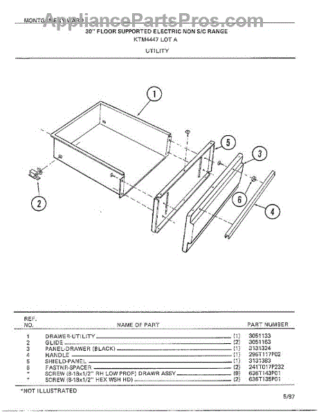 Parts for Frigidaire 4447A: 30" Floor Supported Elec Utility Parts