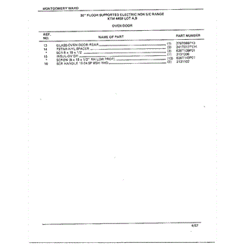 Parts for Frigidaire 4458B: 30" Floor Supported Elec Oven Door Page 2 Parts