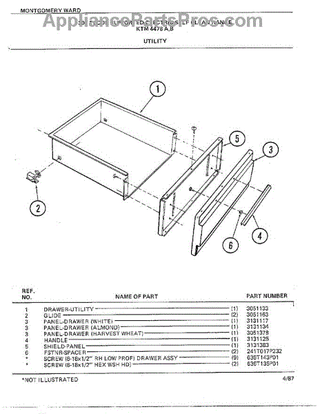 Parts for Frigidaire 4478A: 30" Floor Supported Elec Utility Parts