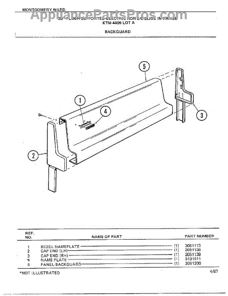 Parts for Frigidaire 4409A: 30" Floor Supported Backguard Parts