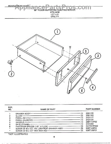 Parts for Frigidaire 4418B: 30` Floor Utility Parts