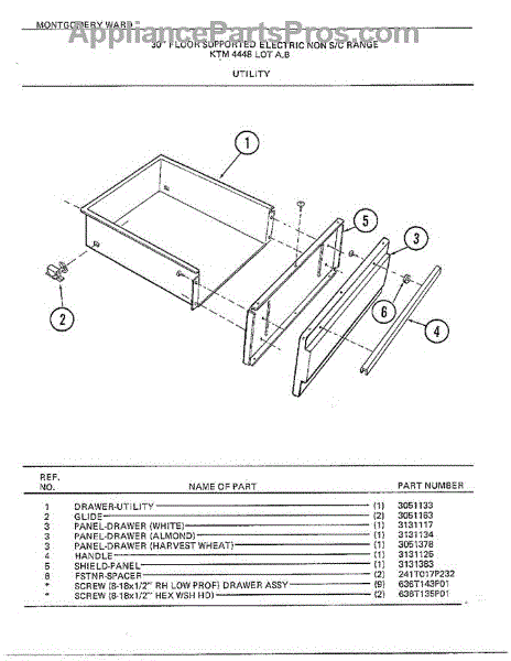 Parts for Frigidaire 4448A: 30" Floor / Utility Parts