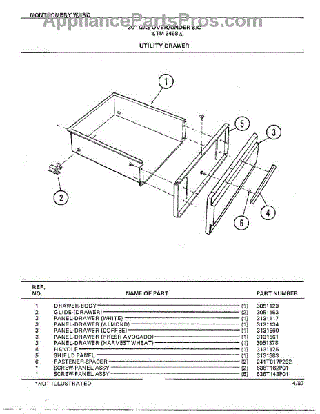 Parts for Frigidaire 3468A: 30" Gas Over / Under Utility Drawer Parts