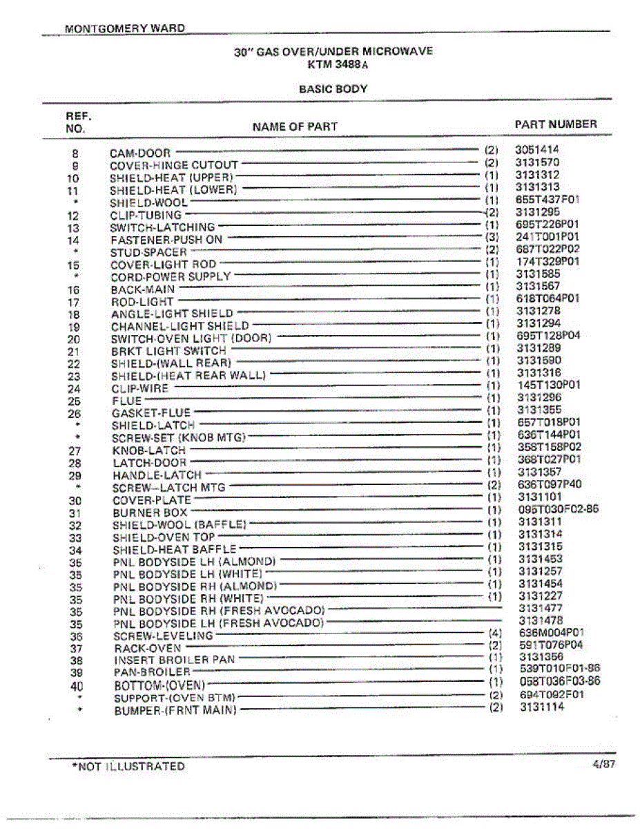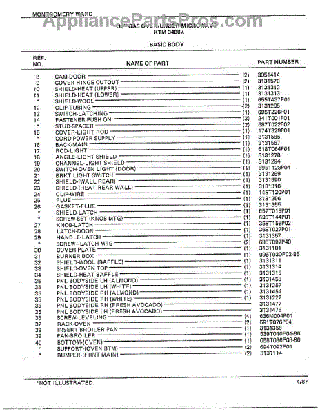 Parts for Frigidaire 3488A: 30" Gas Over / Under Basic Body Page 2 Parts