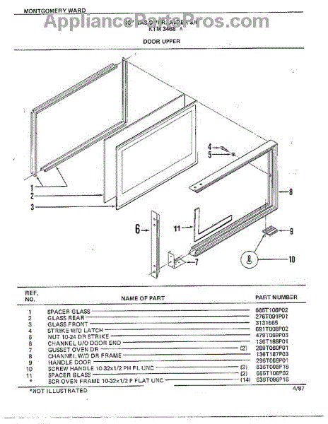 A small replacement screw used to secure an appliance handle. Installs quickly to restore a loose or missing handle-fastening point so doors and drawers close and open securely. What it does