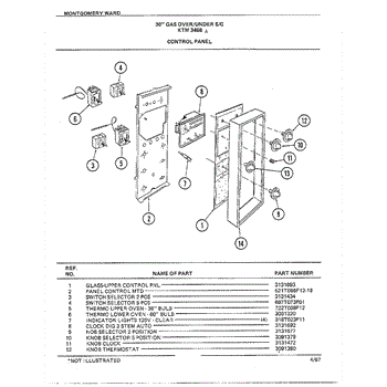 Parts for Frigidaire 3468A: 30" Gas Over / Under Control Panel Parts