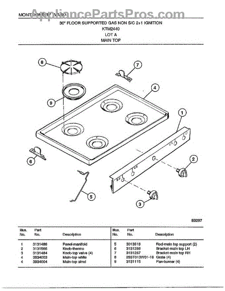 Parts for Frigidaire 2440A: 30" Gas Range / Main Top Parts
