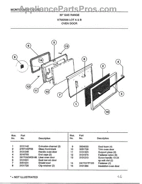 Parts for Frigidaire 2568A: 30" Gas Range / Oven Door Parts