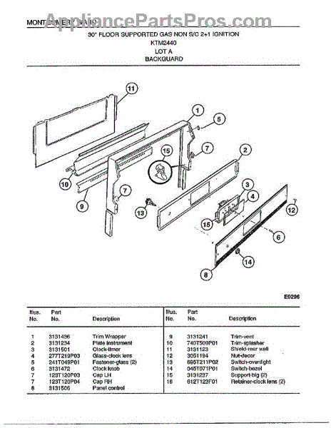 Parts for Frigidaire 2440A: 30" Gas Range / Backguard Parts