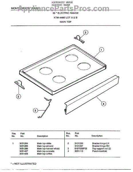 Parts for Frigidaire 4460B: 30` Main Top Parts
