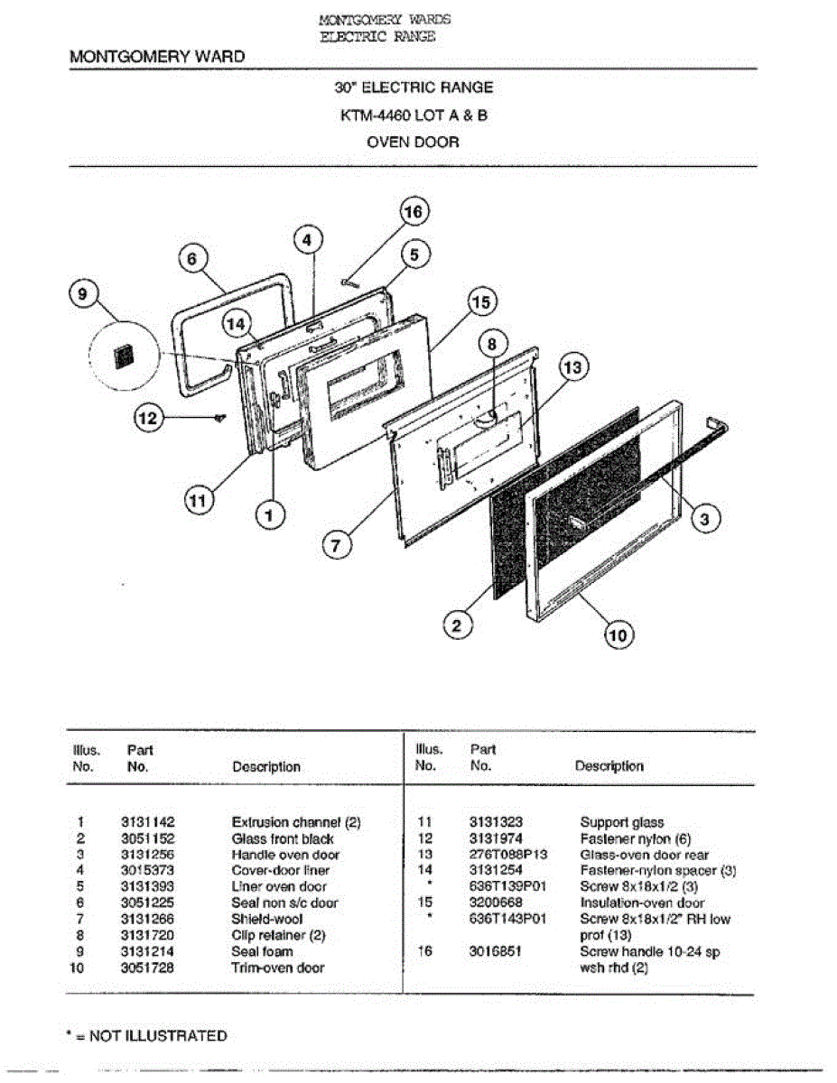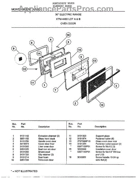 Parts for Frigidaire 4460B: 30` Oven Door Parts