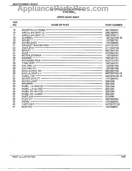 Parts for Frigidaire 3488A: 30" Over / Under Upper Basic Body Page 2 Parts