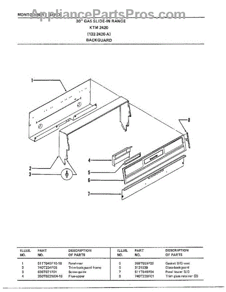 Parts for Frigidaire 2420A: 30" Range / Backguard Parts