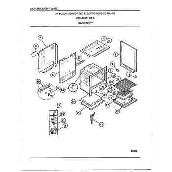 Insulation blanket surrounds the oven cavity to retain heat. Replace if burnt, deteriorated, or damaged by pests to restore proper heat retention.