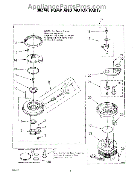 Parts for Whirlpool DU7903XL0: 06 - 302740 Pump Parts