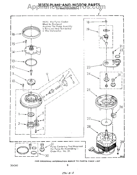 Parts for Whirlpool DU6000XR0: 06 - 303876 Pump And Motor Parts