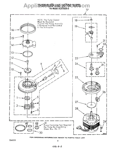 Parts for Whirlpool DU9700XR0: 06 - 304599 Pump And Motor Parts