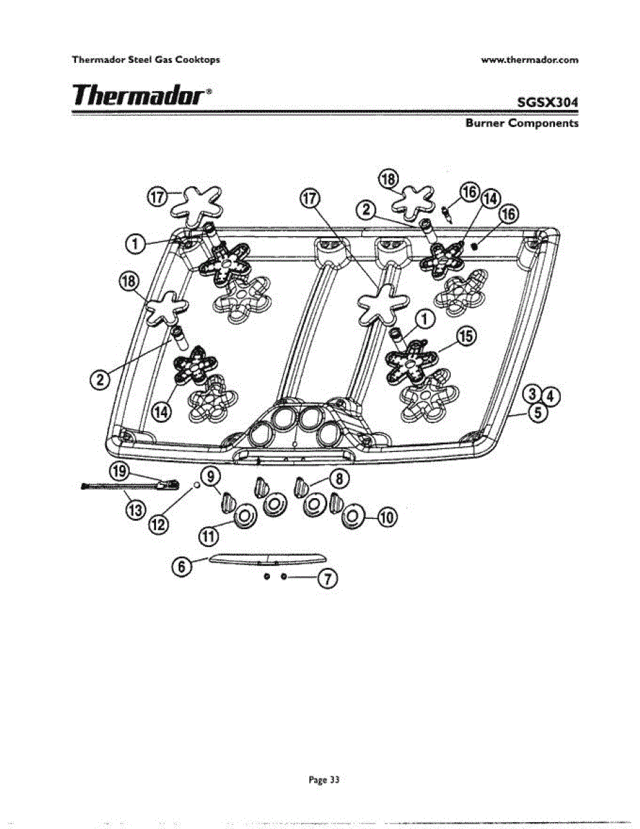 Parts for Thermador SGSX304ZB: 32 - Burner Components Parts