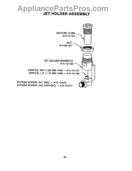 • Direct replacement for a damaged, clogged, or incorrect jet during service or LP conversion