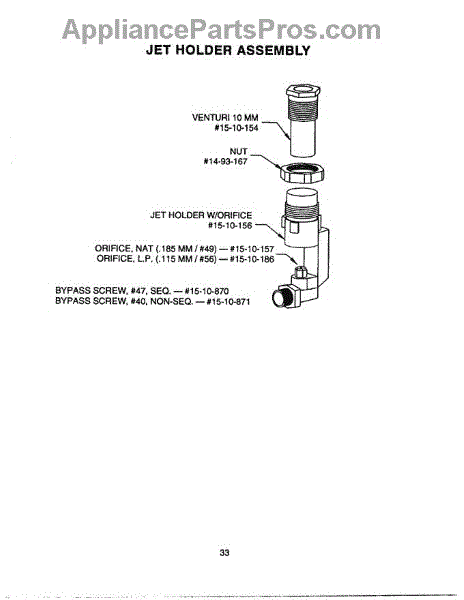 Parts for Thermador PCS484GG: 33 - Jet Holder Assembly Parts