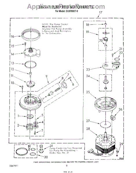 Parts for Whirlpool DU9700XT0: 06 - 3367441 Pump And Motor Parts