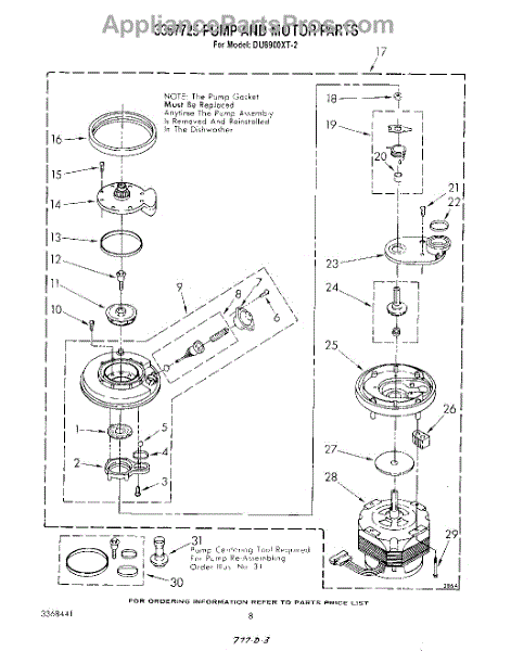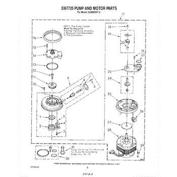 Parts for Whirlpool DU8900XT2: 06 - 3367725 Pump And Motor Parts