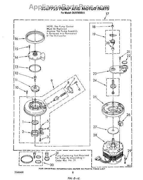 Parts for Whirlpool DU9700XR5: 06 - 3367725 Pump And Motor Parts