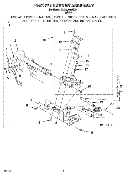 Parts for Whirlpool GCGM2991MQ0: 04 - 3401771 Burner Assembly Parts