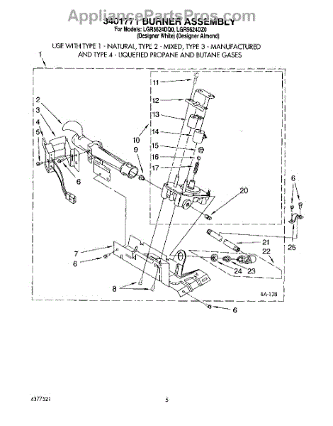 Parts for Whirlpool LGR5624DZ0: 03 - 3401771 Burner Assembly Parts