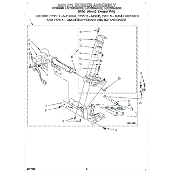Parts for Whirlpool LGT5624BN2: 03 - 3401771 Burner Assembly Parts