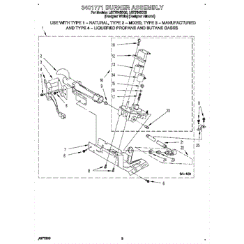 Parts for Whirlpool LGT7646DZ0: 03 - 3401771 Burner Assembly Parts