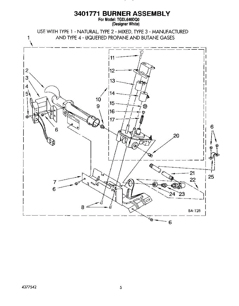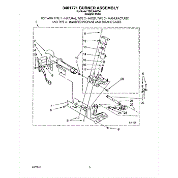 Parts for Whirlpool TGDL640DQ0: 03 - 3401771 Burner Assembly Parts