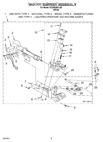 Parts for Whirlpool GCGM2991LQ0: 05 - 3401771 Burner Parts