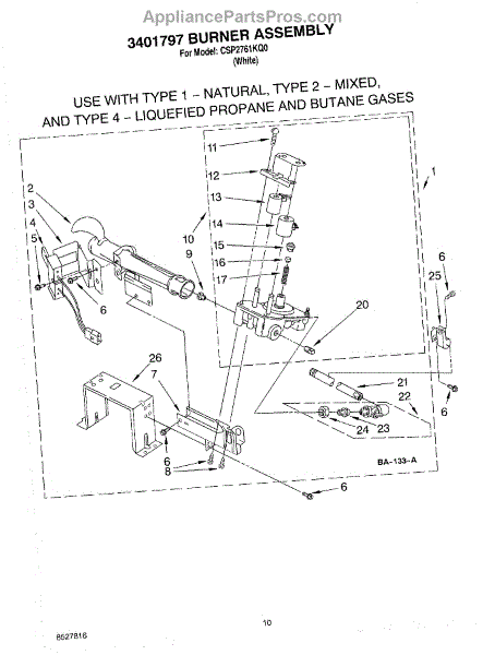 Parts for Whirlpool CSP2761KQ0: 06 - 3401797 Burner, Optional Parts