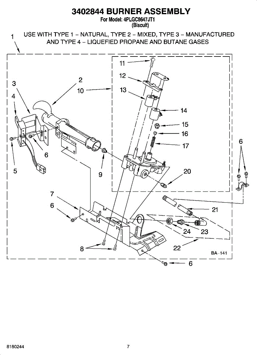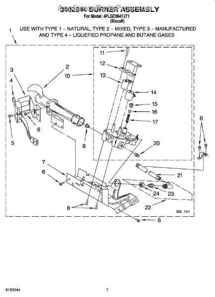 Parts for Whirlpool 4PLGC8647JT1: 04 - 3402844 Burner Assembly Parts